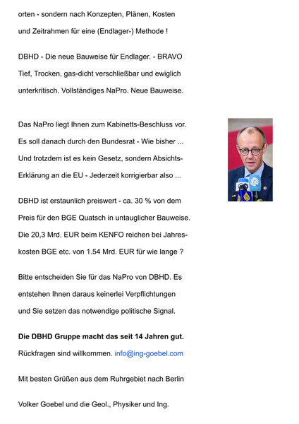 Ing. Goebel im Bürgergeld weiterhin der Top Endlager-Planer. Aber