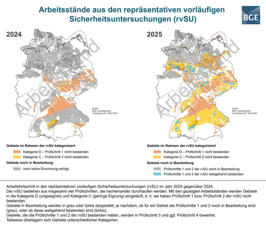 | Bisherige Ergebnisse Standort-Auswahl für Endlager in Deutschland | ||||