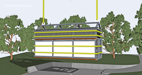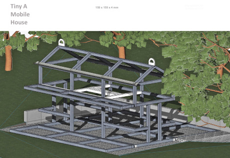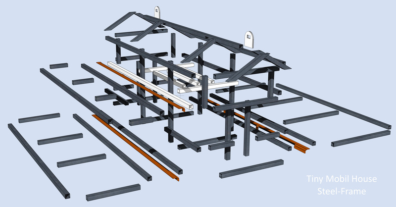 der Stahl-Rahmen des Tiny Mobil House hat noch Übergewicht