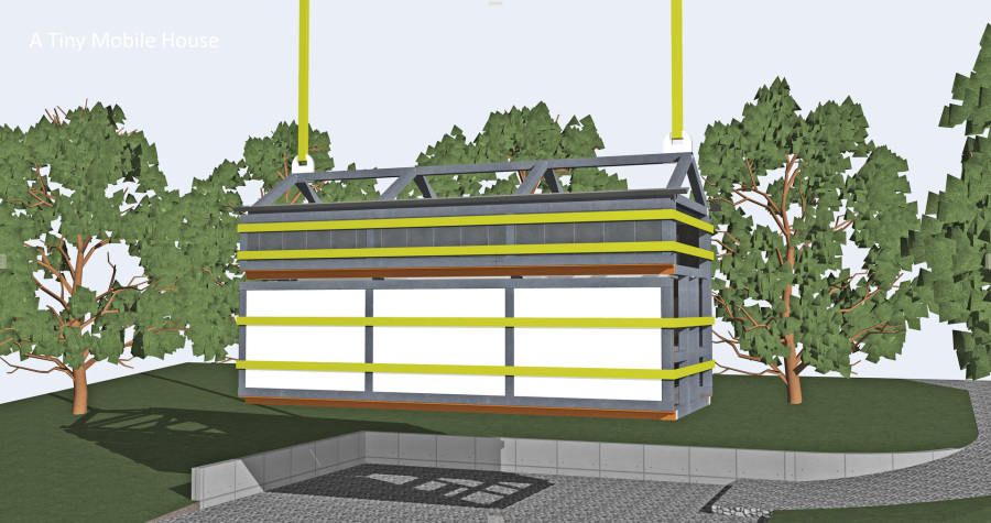 Someone asked for a swimming Tiny Mobile House - OK, concrete pontons
