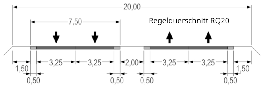 Ing. Goebel sieht den Regelquerschnitt RQ 20 als Minimum-Ausbau für die 1.400 m Umleitung an.