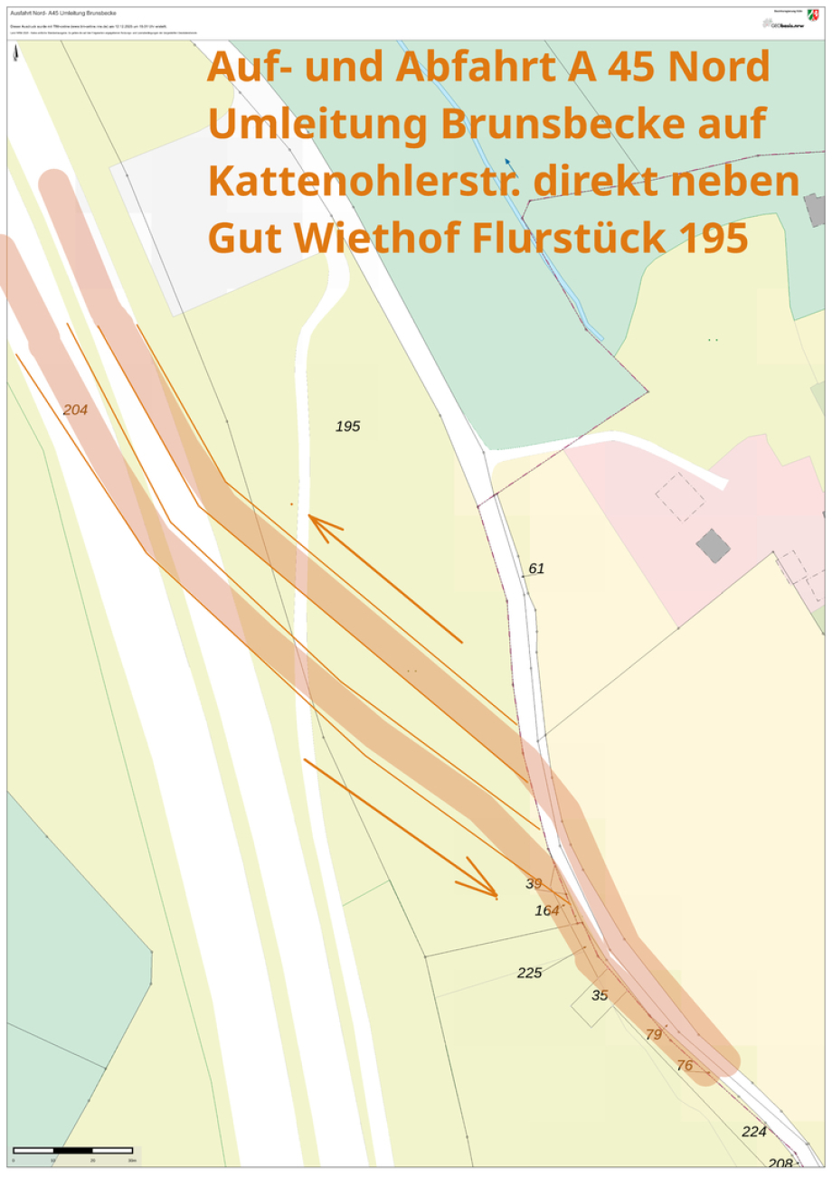 Die Auf- und Abfahrt Nord und Süd der A45 Umleitung Brunsbecke sind gross genug.