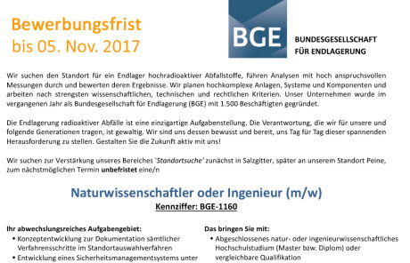 die Endlagerung. Erst ART-TEL dann DBHD und Transporte etc. Die