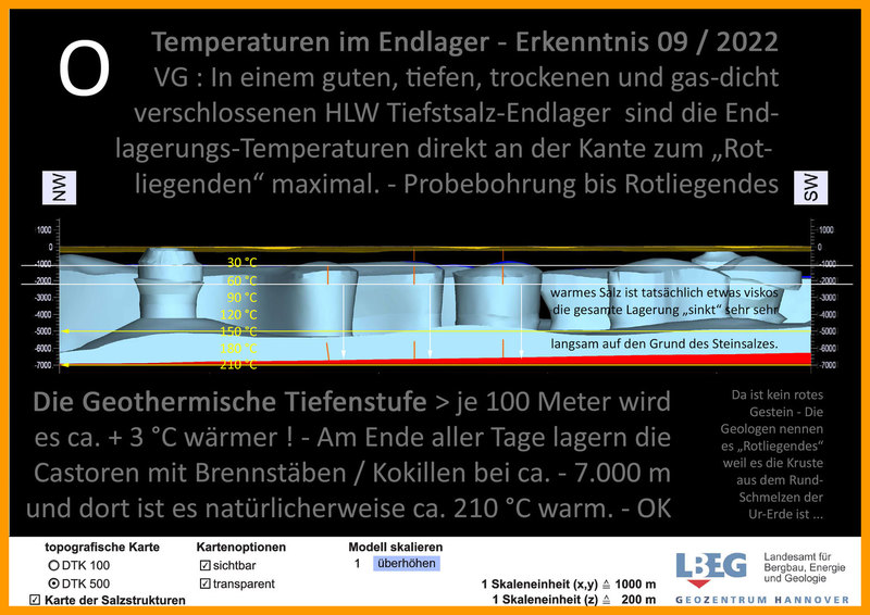 Geophysik Endlager bei Beverstedt DE - Temperaturen im Endlager - Sinken der Einlagerung bis auf das Rotliegend