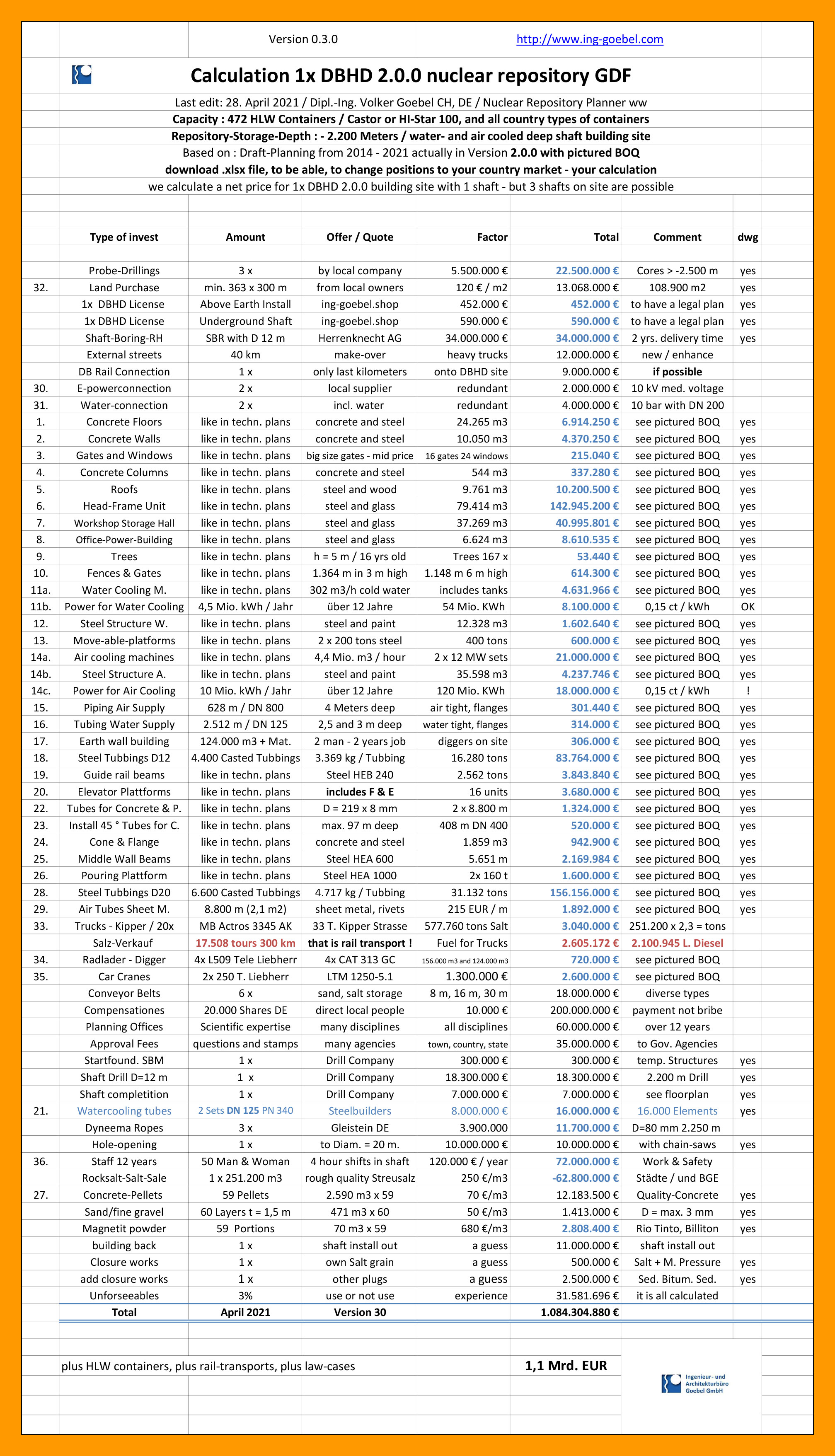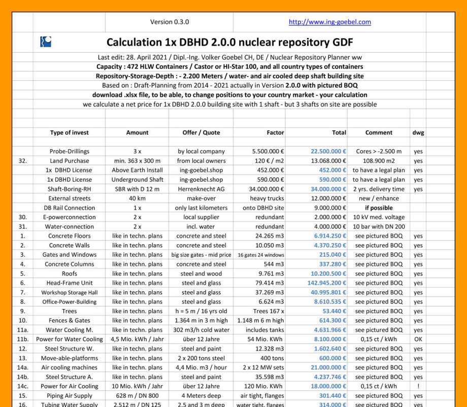 Und die BGE und BASE und GRS weigern sich seit Jahren die DBHD Planung zu diskutieren und zu prüfen.