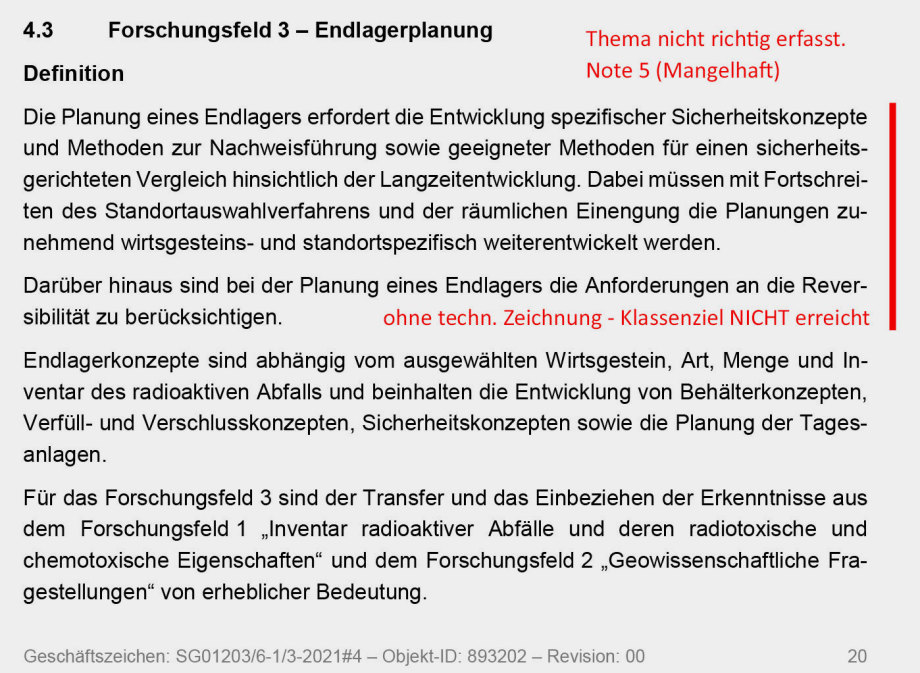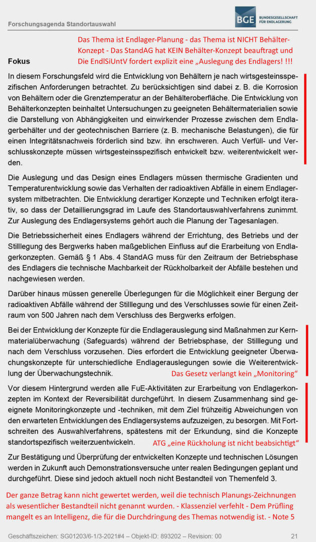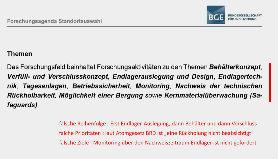 Als Planungs-Unternehmen muss die BGE auch die 2 komplett falschen gesetzlichen Vorgaben im StandAG zur