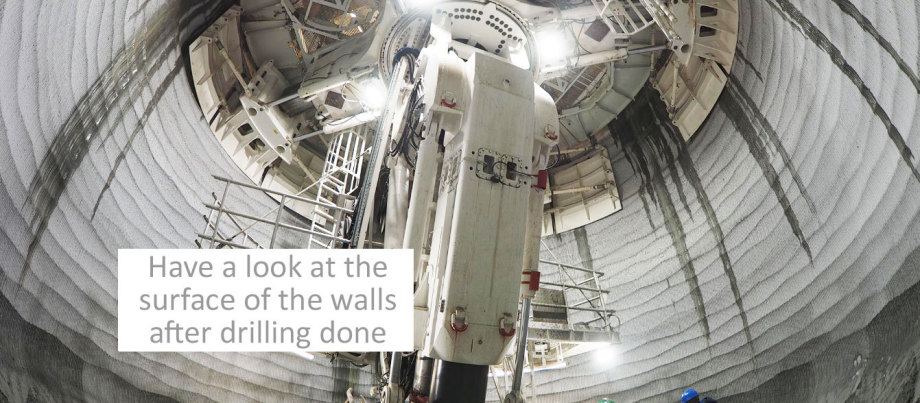 Tonstein lässt sich nicht bohren - der schmiert - Sprengvortrieb zertrümmert den Nahbereich - Wasser.