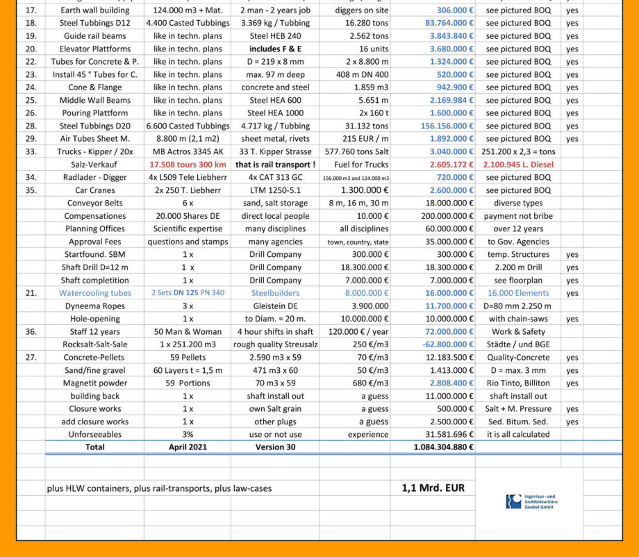 ermitteln. Das seit 45 Jahren völlig erfolglose Provinz-Bauunternehmen DBE/BGE sperrt die gesamte Planungs-