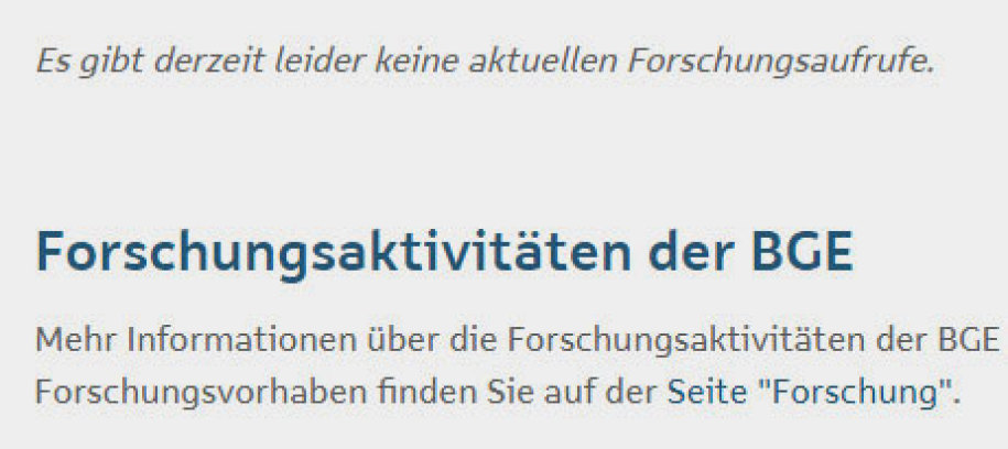 Da steht also jetzt "Endlager-Planung" auf der Seite "Forschung" - das ist leider nur eine Absichts-Erklärung und