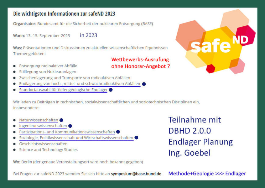 DBE BGE Endlager-Idee für hoch radioaktive Reststoffe war niemals existent. - Wie sollen unabhängige Wissen-