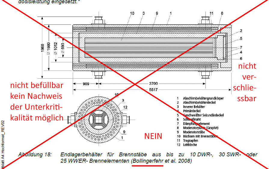 Behälter als den Castor !!! - Der Castor ist durch Blei-Verguss des Inventars im Endlager dauerhaft unterkritisch.