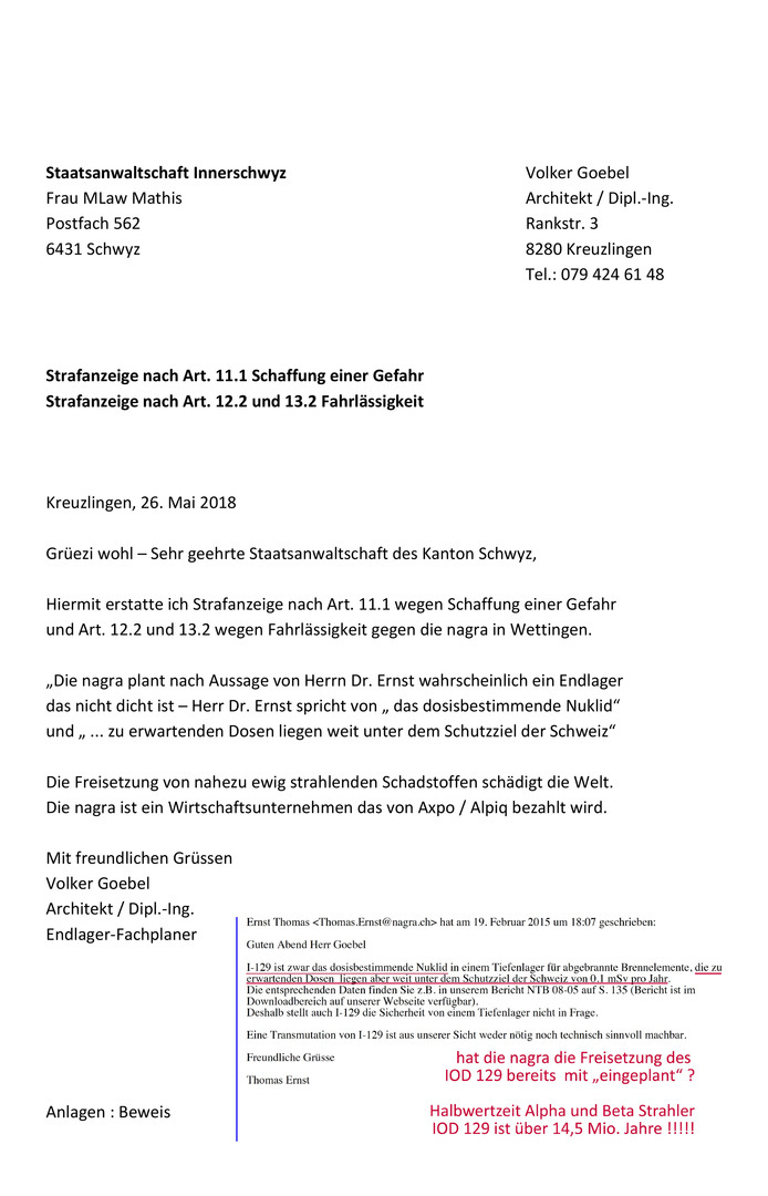 Grüezi - Sehr geehrte ALPIQ, AXPO, nagra, Nationalräte CH,