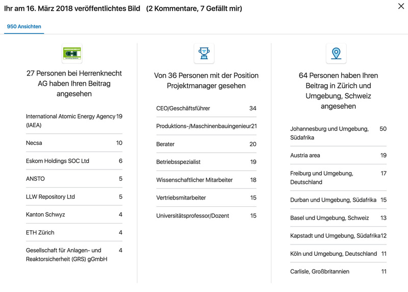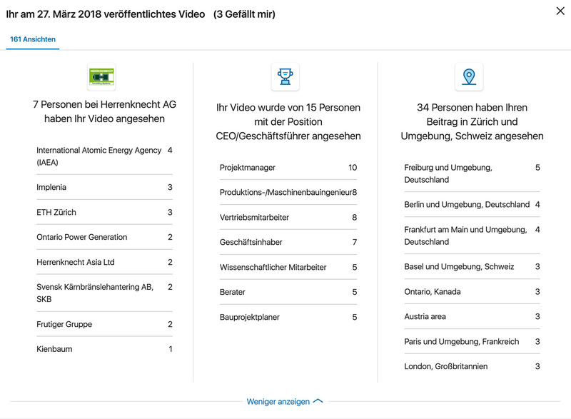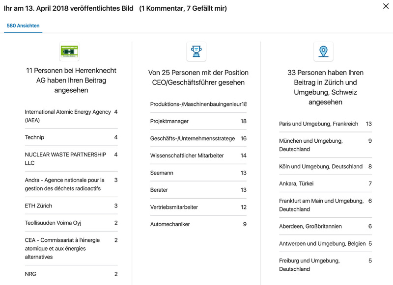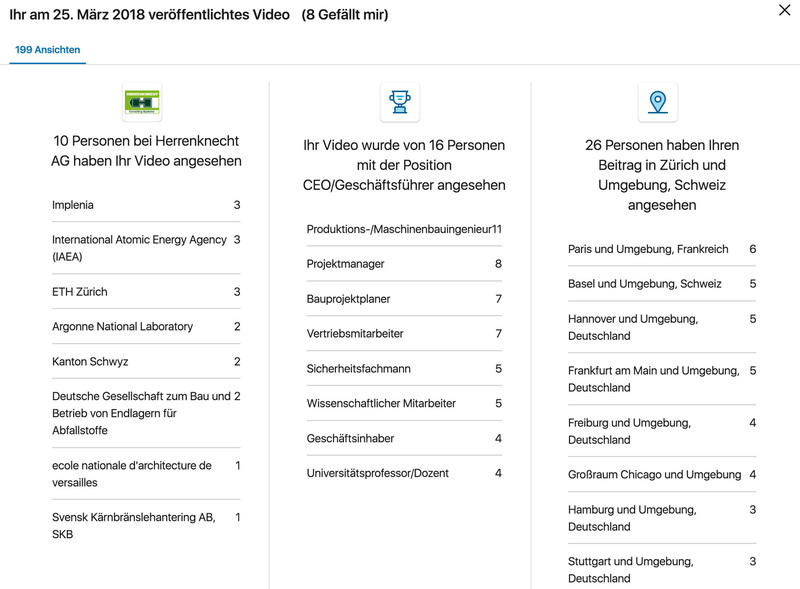 - Ca 900 Fachleute der Nuklear- und Endlagerbranche weltweit haben sich für die Zusendung der technischen