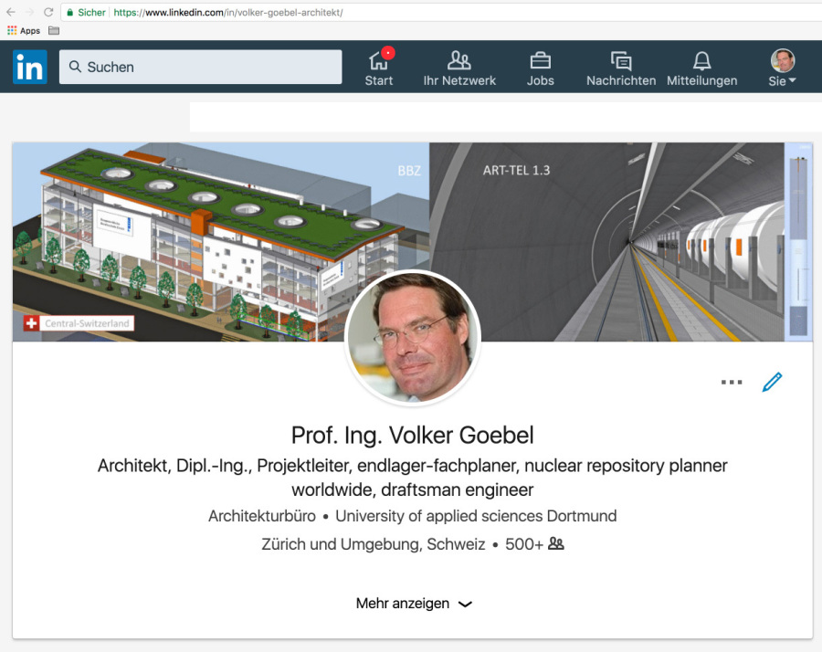 https://www.linkedin.com/in/volker-goebel-architekt/ - da trifft man sich für ein Fachgespräch zum Thema Endlager