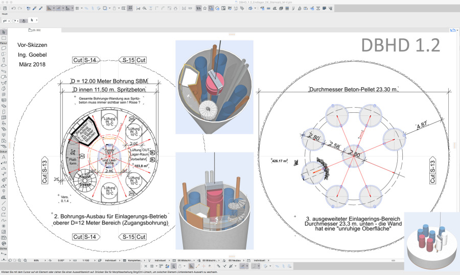 Vor-Überlegungen von Ing. Goebel zum Ausbau der D = 12 Meter Schacht-Bohrung