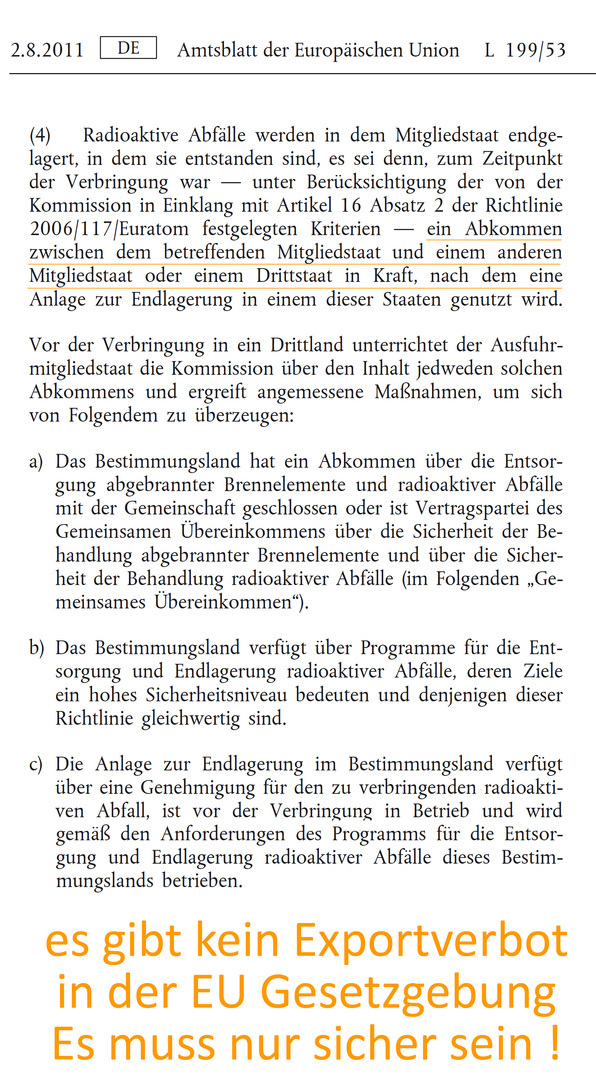EU Euratom Recht sieht solche Kooperationen aber ausdrücklich vor. Endlagerung ist gesetzliche Pflicht !