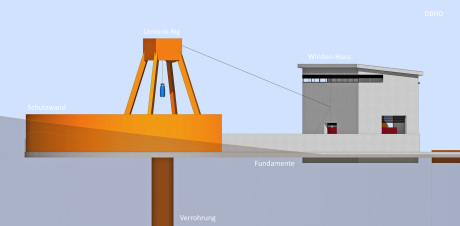 auf Erweiterungsbereich 23,5 Meter ist mit einem Beton-Konus ab