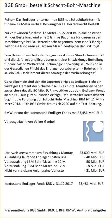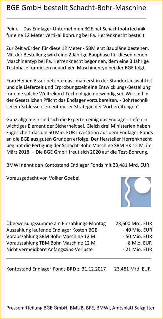 Vorher trug die BGE GmbH den Namen DBE GmbH und hat es 37 Jahre nicht geleistet. Das sind einfach die falschen Leute !!!