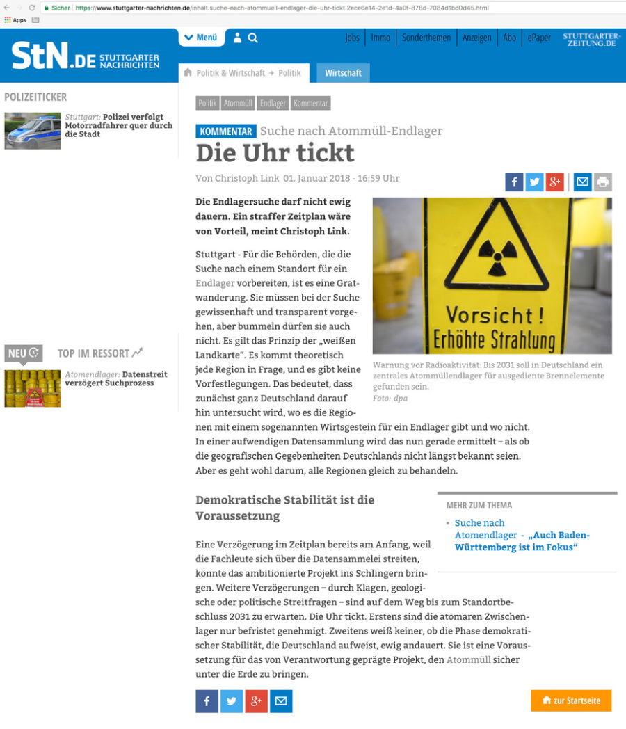 Ausserdem ist der "Suchauftrag der Kommission Endlagerung mit einer Tiefe von max. 1.200 Metern falsch formuliert" - Jedes