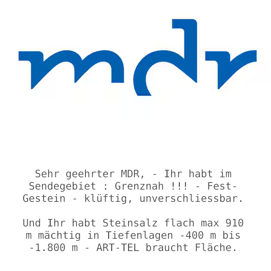 >>> Hallo MDR - Ihr habt im BGE Sendegebiet viele 2 interessante Geologien - Festgestein - klüftig, nass, Sprengvortrieb - UND - Flaches Steinsalz immerhin