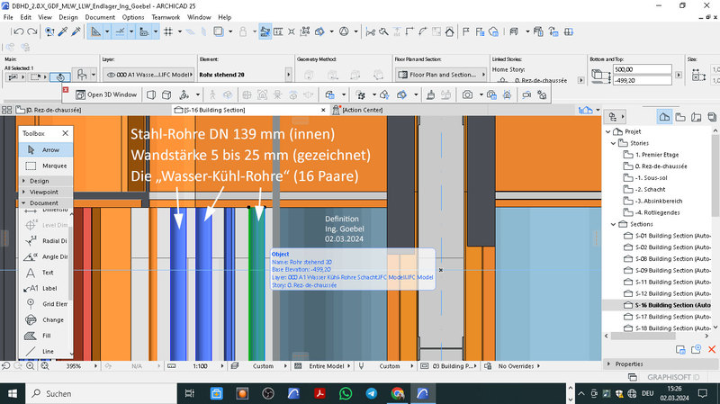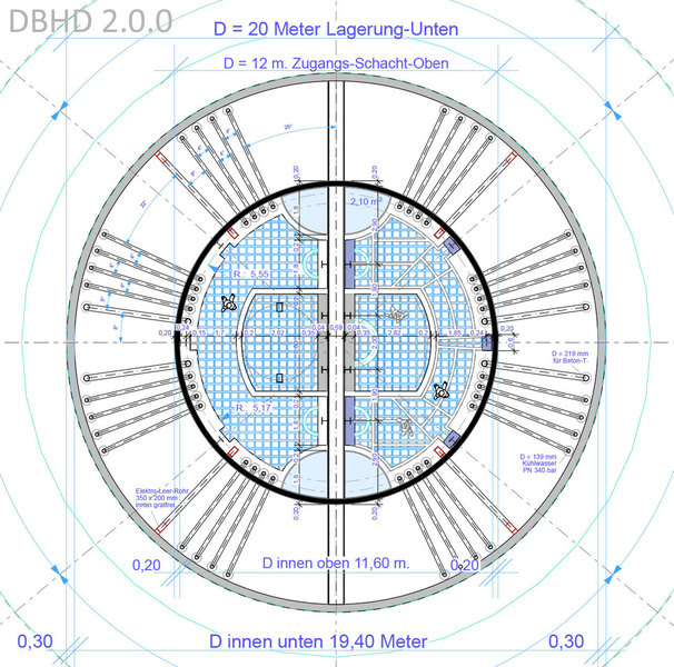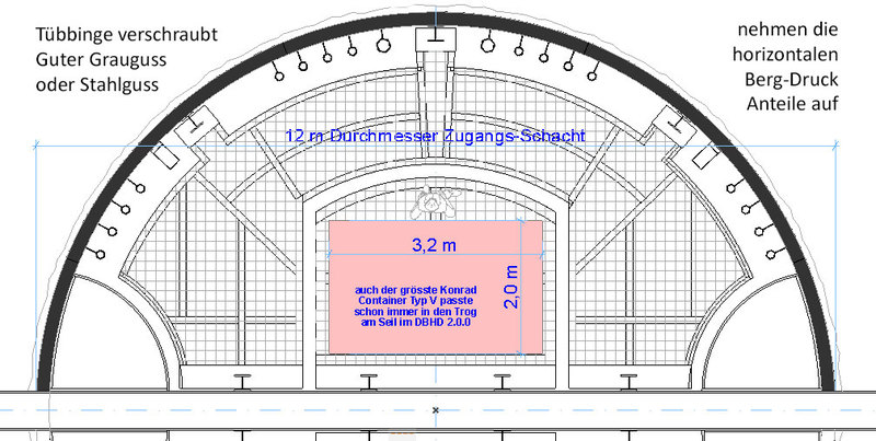 maßstäblichen Schnitt - DBHD HLW Endlager in seiner finalen Form.