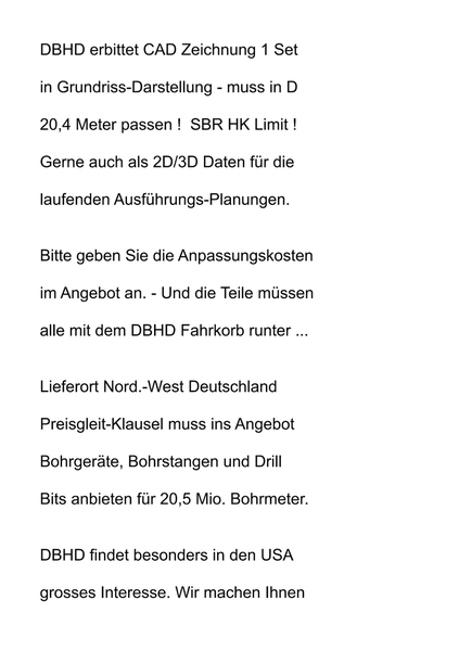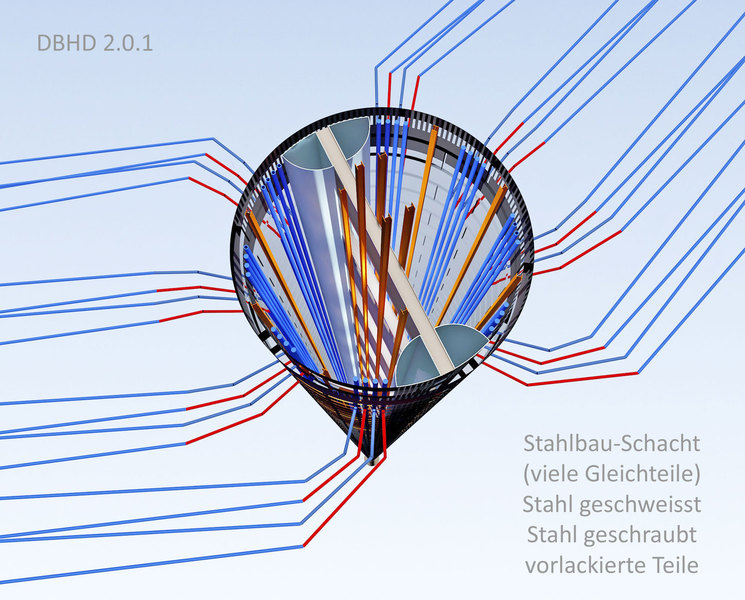 Die SBR Bohrtechnick wird mittlerweile Standart-Mässig angeboten für D = 12 Meter, - die aber durch den schon immer vorhandenen Teleskop-Arm mit Wühl-Schneid-Rad eben auch D = 20 Meter kann ! - Sogar 22 Meter wären möglich - falls das jemand will. - Die SBR Maschine kann mittlerweile also exakt was DBHD 2.0.0 braucht !!!