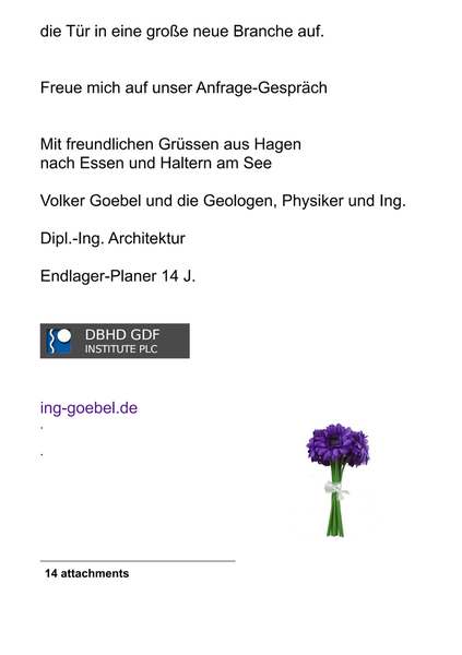 Sehr geehrte BGE GmbH - Frau Ing. Iris Graffunder, Herr Ing. Korth,