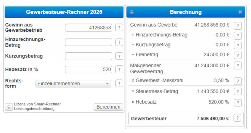 Fussnote : Bitte bedenken Sie auch die 43 % E-Steuern !!!