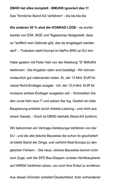 lich schon Kenntnis ! von der DBHD Endlager- Planung.