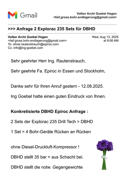 Das war das Jährliche Telefonat mit Herrn Rennkamp. - Also gute Nachrichen für DBHD 2.0.0 - beide Durchmesser mit der gleichen Bohrmaschine vor Ort möglich und sogar eine Normal-Anwendung. - Danke- Gesprächs-Mitschrift von Dipl.-Ing. Architektur Volker Goebel