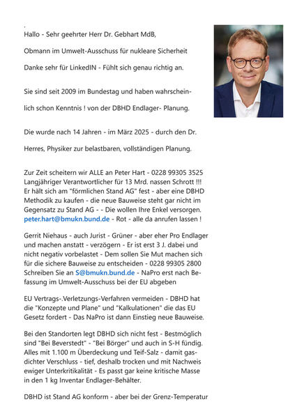 >>> Dr. Gebhart MdB - Danke für LinkedIn - Brief wg. NaPro BRD SKANDAL