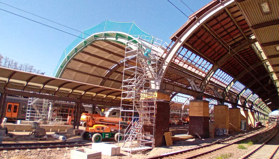 >>> mit dem blauen BMW RS 1.100 Motorad in den Revieren - OHHHH !!! - die Bahnhofs-Sanierung hat die Hallen erreicht - nach genau 13 Jahren - und der erste Blick gefällt - da fahr ich heute auch noch hin - CoStadtbaurat Hagen - Sieht nach 83 % Kompromiss-Farben und NEUE Dachhaut aus.