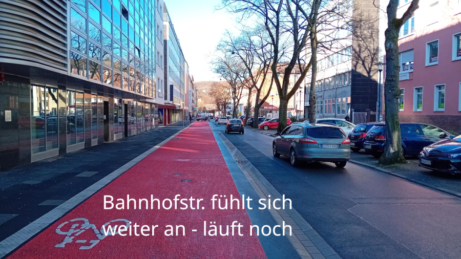 Andererseits muss so ein Radweg ja auch irgendwie an die Bahnhofs-Vorplatz an-
