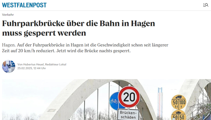 In der Zeitung steht die Brücke rutscht ? - Erbitte kompletten Schadens-Bericht.