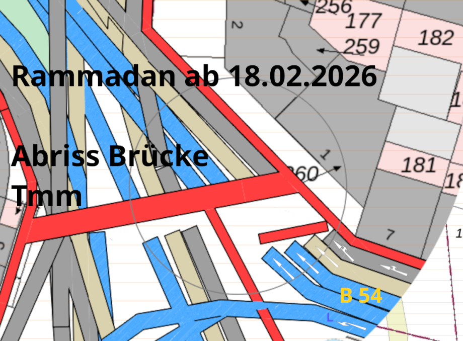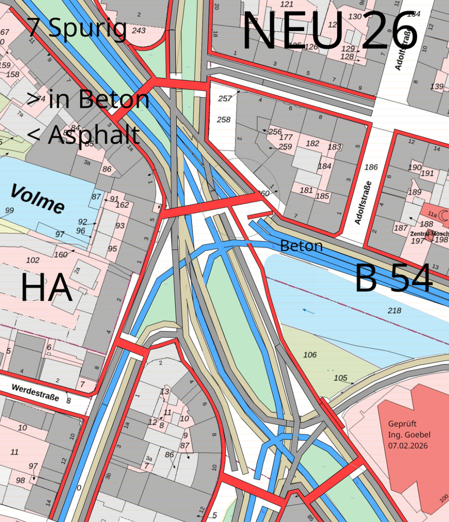 nach Abriss Hochbrücke auf die Strasse bitte. Zeigen
