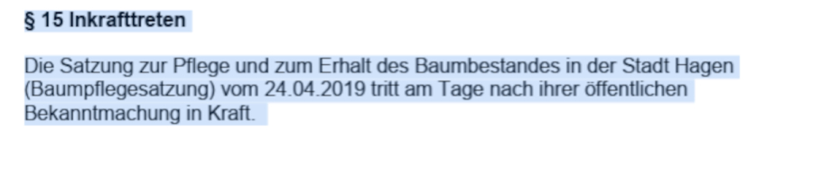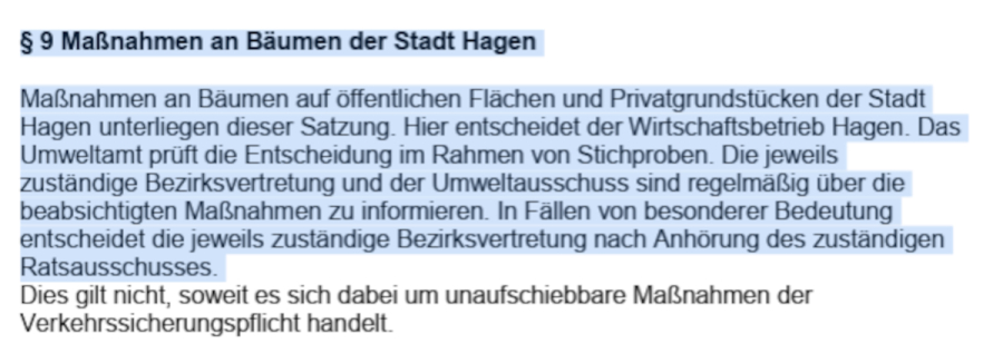 Baumpflege-Satzung Hagen ausser Kraft setzen - 19.000.000 Bäume aus wirt-