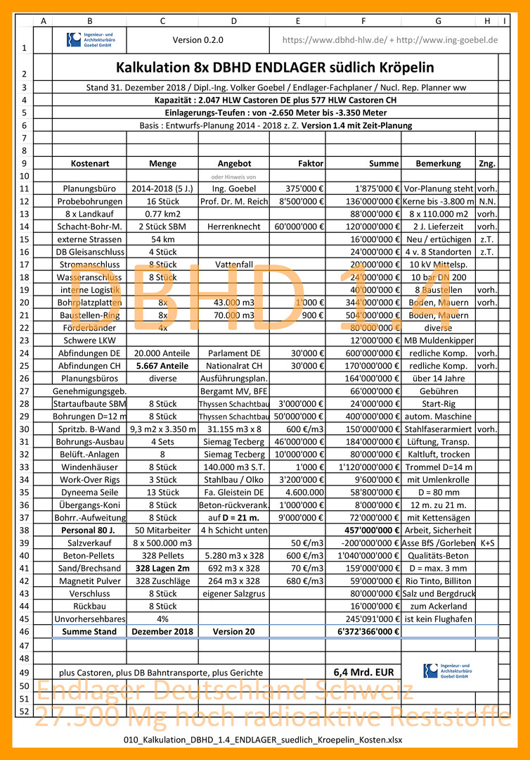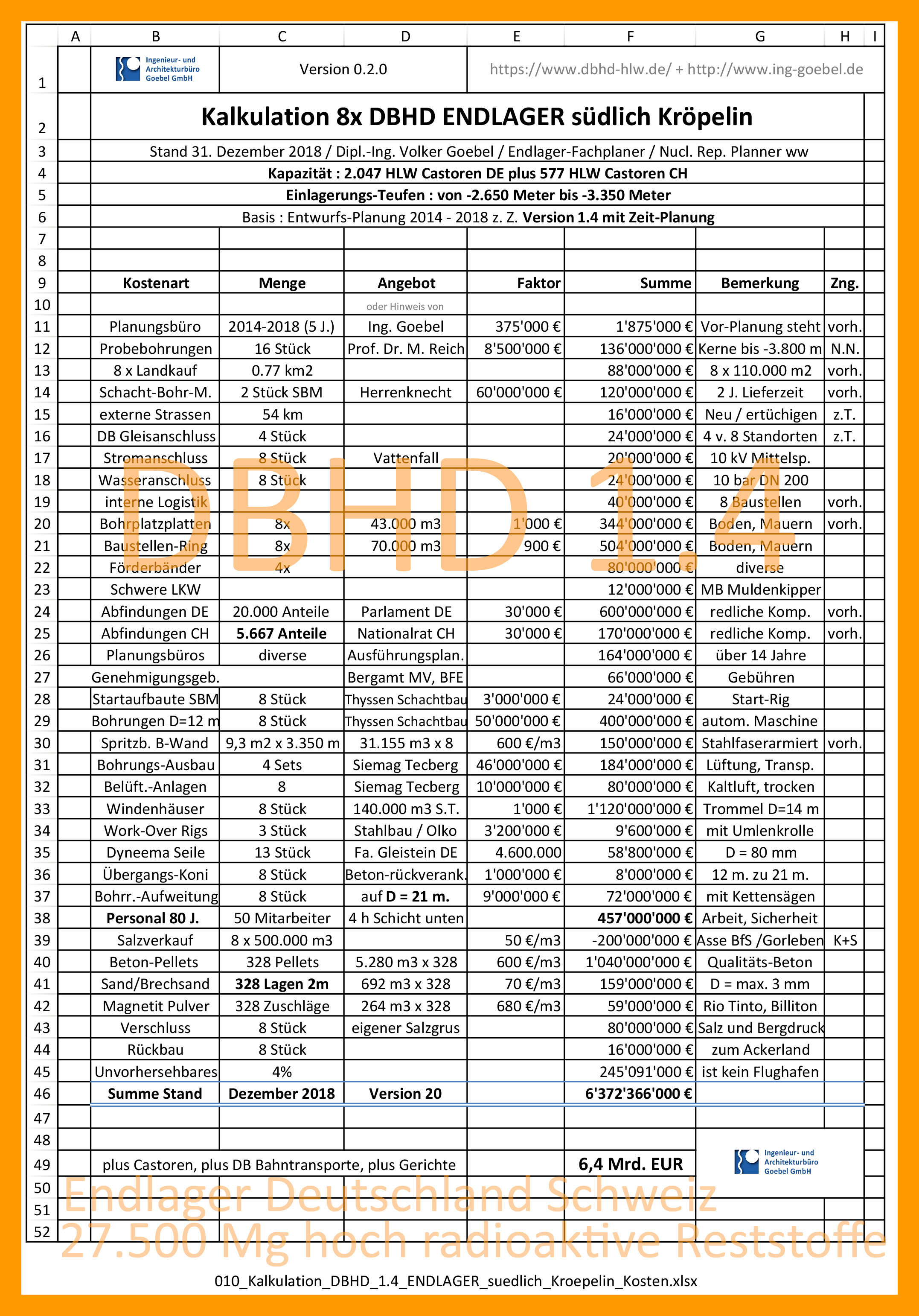 Fortsetzung in Excel - das ist zu kompliziert im CMS - vielleicht sind das auch die laufenden Kosten für den Bau des LLW Endlager Konrad ... ???