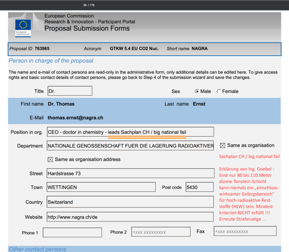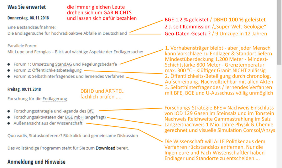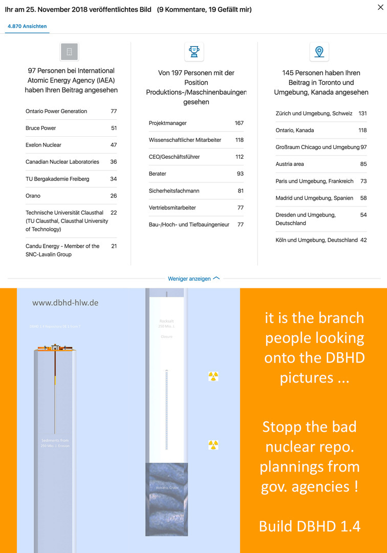 Tausende von Fachleuten in 32 Ländern äusserten sich positiv - nur das BFE DE hält an seiner Standort-Suche fest - davon können diese unfähigen Leute ganz gut leben - das reicht bis zur Pension und für die Pension - und dabei möchte ein unfähiger Beamter nicht gestört werden.