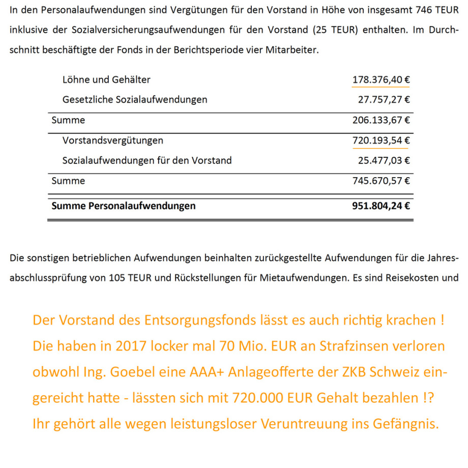 Der Entsorgungsfonds bekommt auch eine Strafanzeige weil aus dem