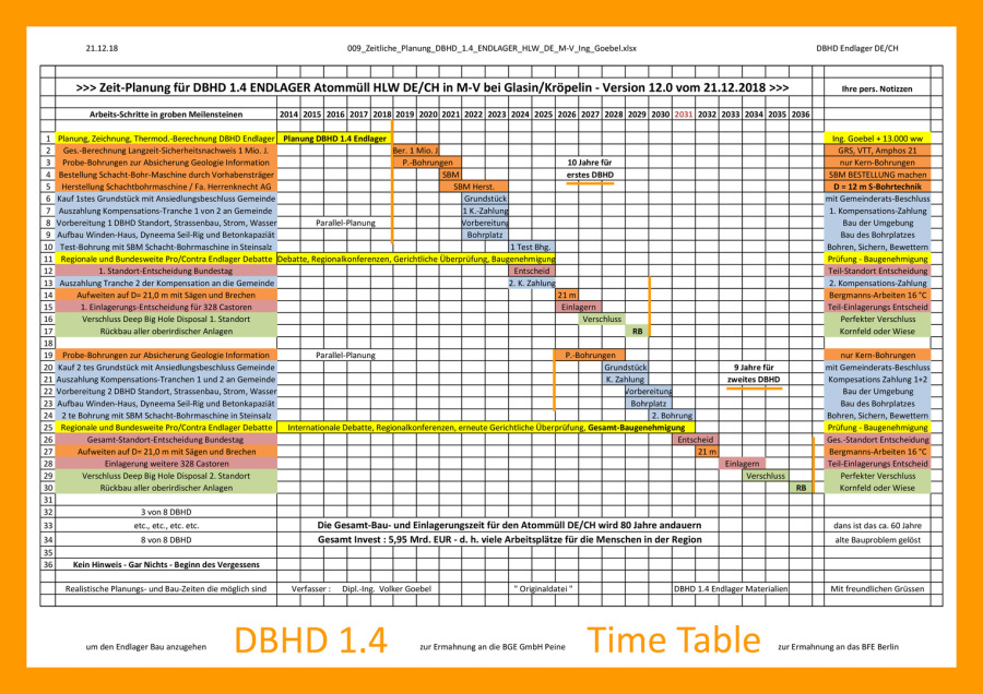 Nach 60 Jahren abwarten - nach 37 Jahren erfolgloser DBE / BGE gibt es jetzt endliche eine Bohrtechnologie, einen Standort und eine Planung - damit ist der gesetzliche Auftrag EU/DE vorbildlich zu erfüllen - Aber das BFE in Berlin prüft nichts und mauert ...