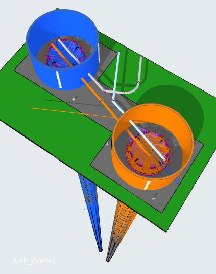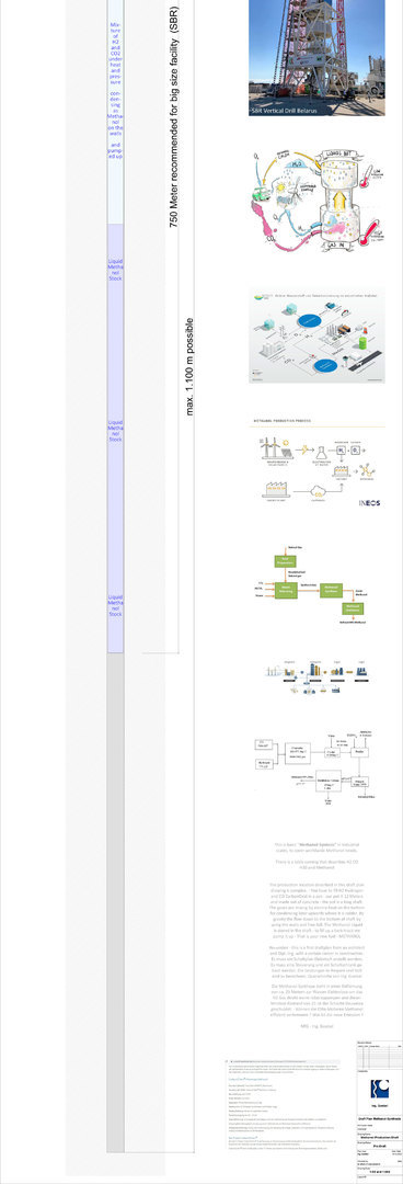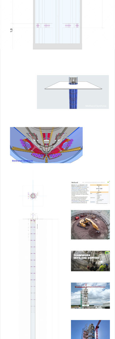 >>> Methanol-Produktions-Schacht - Elektrische Widerstands Heizung - Schach-Fuss-Bereich 500 °C und Schacht-Kopf-Bereich 56 °C - Innendruck aus Gas-Erwärmung auf bis zu 300 bar - in die Erde hineingebaut - #Methanol #Produktion #Schacht #IngGoebel