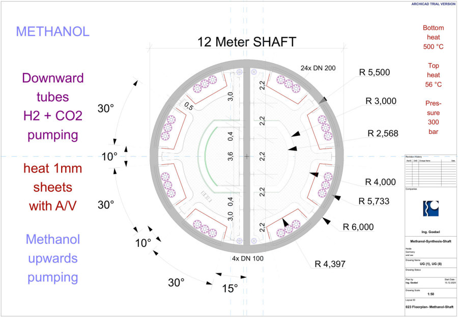 >>> Methanol-Production-Shaft - electric resistance heating for hot bottom 500 °C and cold top 56 °C - and pressure 300 bar - build into earth - #Methanol #Production #Shaft #IngGoebel