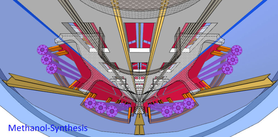 Der Methanol-Schacht kann auch bei Befüllung mit Flüssig Ammoniak als Amonium Cracker betrieben werden.