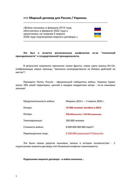 Entwurf : Friedens-Vertrags-Vorschlag Deutsch - Russland-Ukraine Krieg. Die vorliegende Version 5 vom 10.02.2026 enthält jetzt Donbas Regelung. Es sind die Unterschriften die zählen. - Die Schweizer Botschaft in Berlin nimmt Blätter mit Unterschriften entgegen.