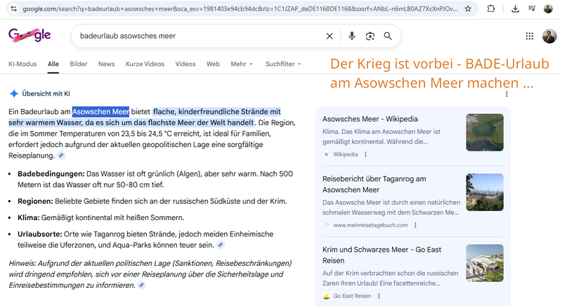 die Krim gebaut werden. Und Ferienhäuser am Asowschen Meer ...