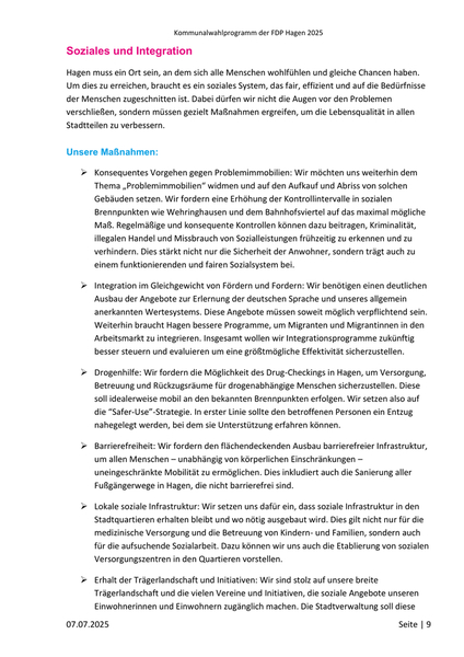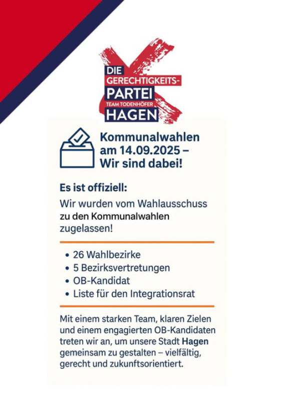 Am 23.07.2025 steht die CDU Hagen ohne Wahl-Progamm da !!!
