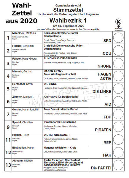 Partei, Wählergruppe, Kandidat Oberbürgermeister-Wahl HAGEN |