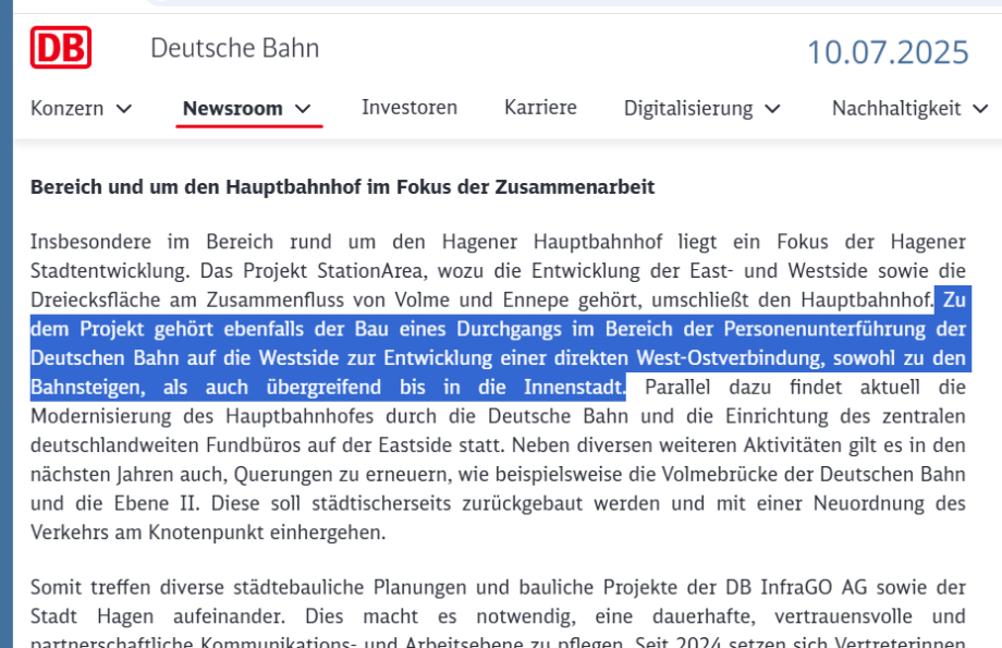 Durchstich DB Personen-Tunnel (40 m verlängern - bis in Freie - in die Westside) -