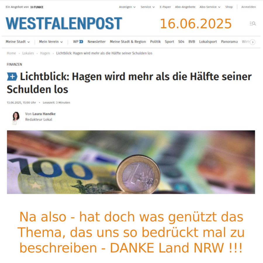 ich weine gerade !!! - Gelingt es, den Insolvenzfall HAGEN noch zu retten ? "Altschulden-Lösung"