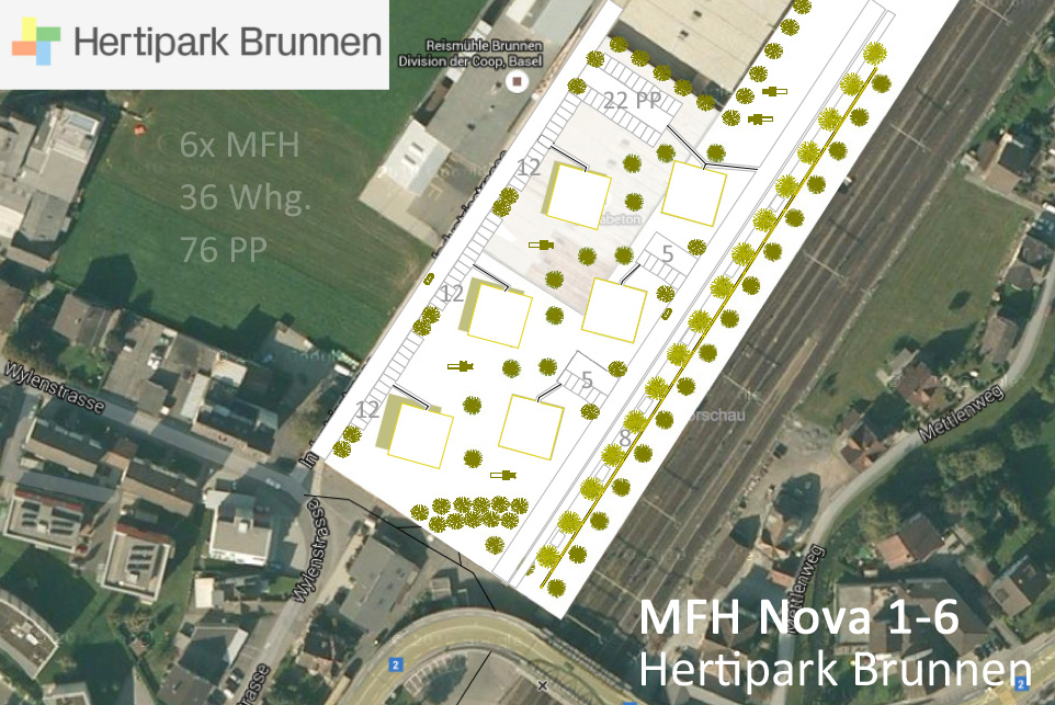 >>> Gestaltungsplan mit 6 MFH für NOVA HERTIPARK Brunnen